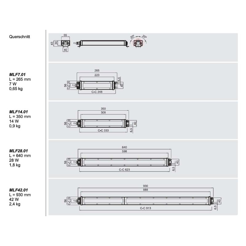 14 W (35,0cm-Variante) ,28 W (64,0cm-Variante) ,42 W (93,0cm-Variante) ,7 W (26,5cm-Variante) |