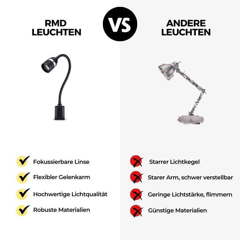 Die Beleuchtungslösung von RMD für Uhrmacher ist einfach fantastisch! Sie bietet eine brillante Leuchtkraft, blendfreies Licht und eine einfache Installation.