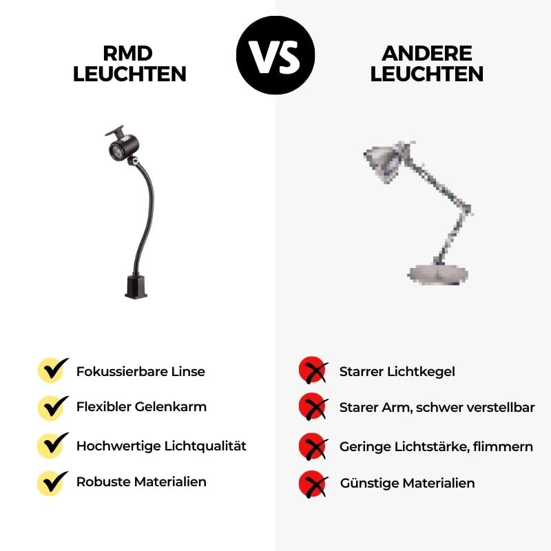 Die Beleuchtungslösung von RMD für Uhrmacher ist einfach fantastisch! Sie bietet eine brillante Leuchtkraft, blendfreies Licht und eine einfache Installation.