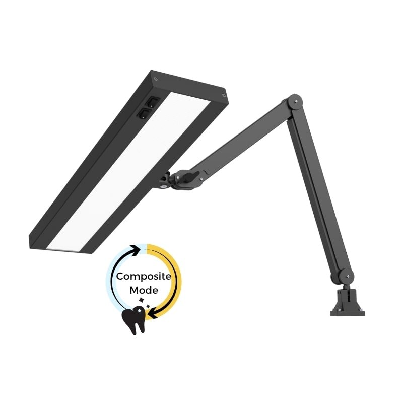 Die Composite Line wurde speziell für Dentallabore und Zahntechniker entwickelt, die mit Composite-Materialien arbeiten. Dank des speziellen Composite-Modus, der den Blaulichtanteil reduziert, verlängert sich die Bearbeitungszeit deutlich – so bleibt das Material länger formbar und Sie können präziser modellieren. Die schattenfreie, homogene Ausleuchtung und der hohe CRI-Wert sorgen zusätzlich für perfekte Sicht auf Farben und Details. Damit ist die Leuchte optimal auf die Anforderungen anspruchsvoller Composite-Arbeitsplätze im Labor und in der Praxis abgestimmt.