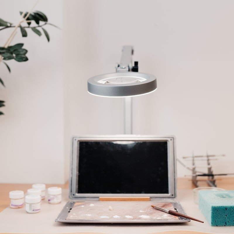 Wer jedoch sehr kleine Details bearbeiten möchten, sollte zu einer Leuchte mit 5-Dioptrien greifen. Mit einer Vergrößerung von 225 % werden auch feinste Objekte gut sichtbar, jedoch verkleinert sich auch das Sichtfeld.