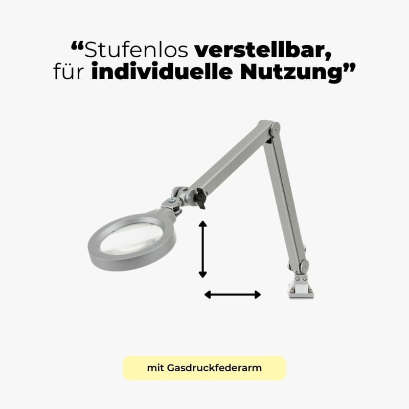 Dank unserer besonders robusten und gleichzeitig leicht verstellbaren Flex- oder Friktionsgelenkarmen bieten unsere Lupenleuchten einen großen Bewegungsspielraum und können individuell entsprechend der Sehaufgabe positioniert werden.