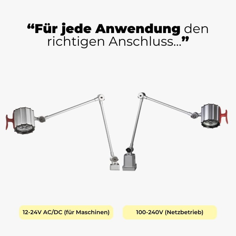 Unsere Maschinenleuchten mit Gelenkarm lassen sich flexibel ausrichten und punktgenau positionieren. Ob am Maschinengehäuse, mit Aufschraubflansch oder Tischklemme – das Licht kommt zuverlässig dorthin, wo es in der Industrie gebraucht wird.