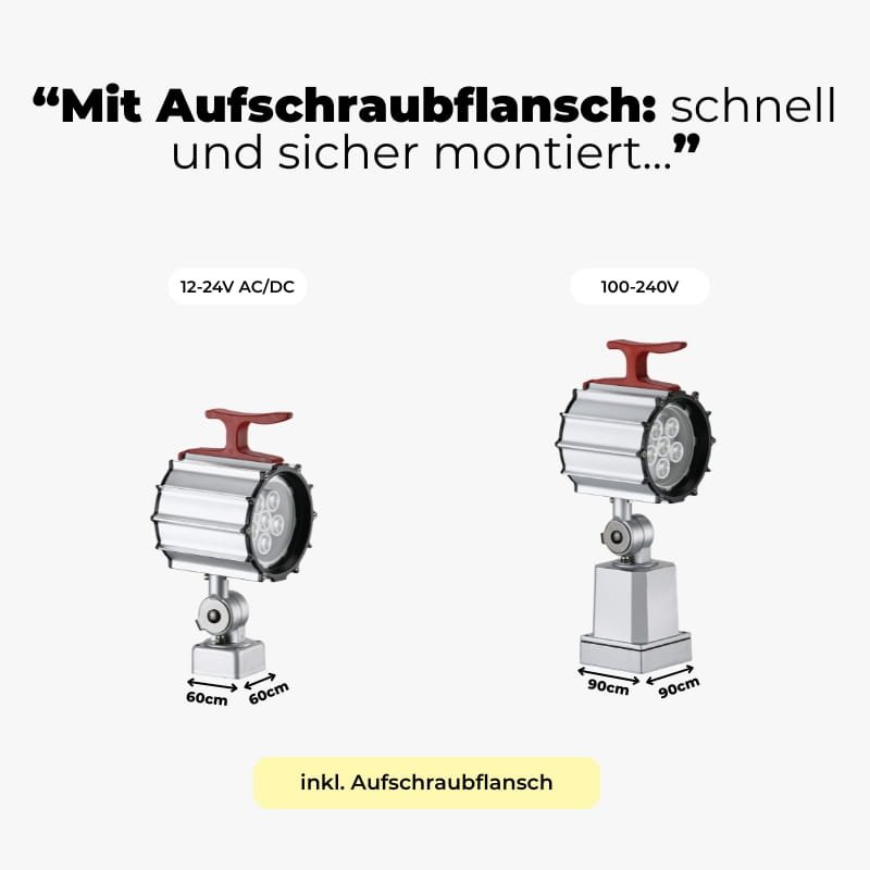 Je nach Modell lassen sich unsere Maschinenleuchten direkt anschrauben oder mit Magnetfuß, Wandwinkel oder Tischklemme befestigen. So stehen für jedes Modell verschiedene Befestigungsoptionen bereit – für maximale Flexibilität bei der Installation.