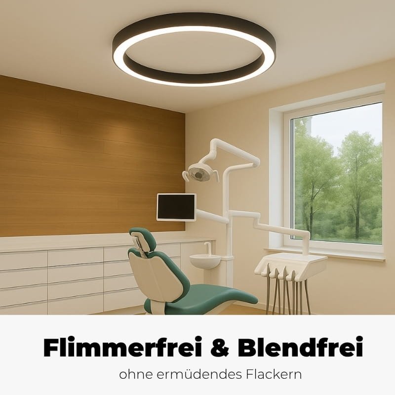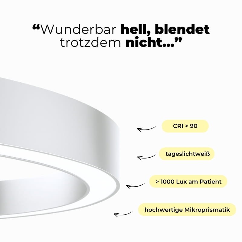 Die neue Beleuchtung hat unsere Arbeitsbedingungen spürbar verbessert. Gerade im Behandlungsbereich ist das Licht jetzt gleichmäßig, blendfrei und sehr angenehm für lange Arbeitstage. Auch optisch wirkt die Praxis deutlich moderner. Eine Investition, die sich definitiv gelohnt hat – sowohl die Planung als auch die Leuchten.