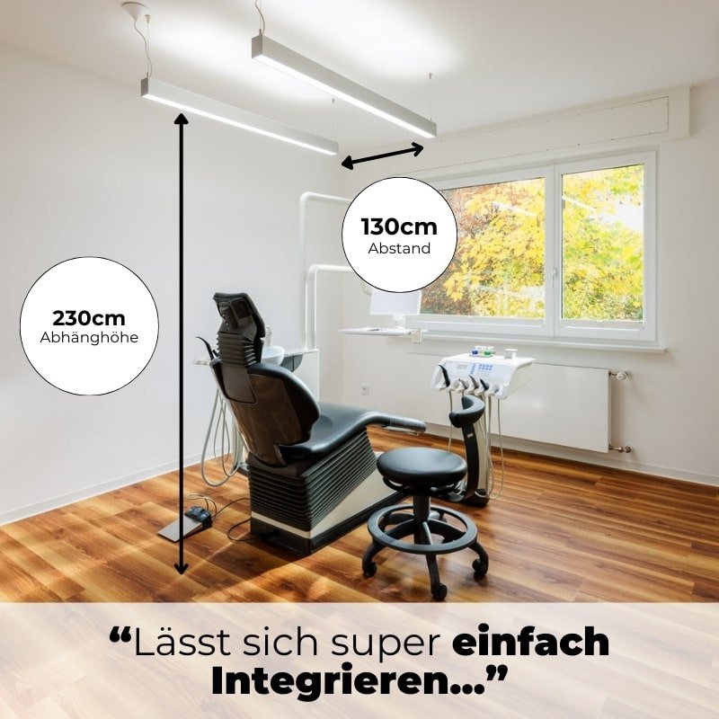 In welcher Höhe sollte die LED Pendelleuchte im Behandlungsraum positioniert werden?