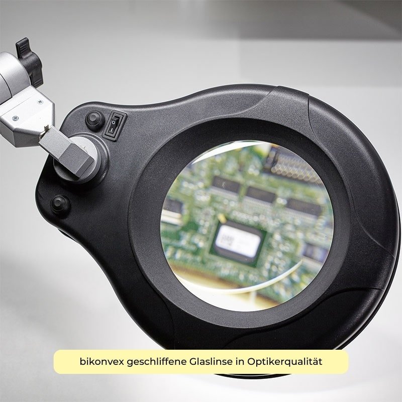 Hände frei zum Arbeiten – Vergrößerung von Objekten und ausreichend Licht mit nur einem Produkt. Arbeiten Sie auch nach längerer Zeit noch konzentriert an filigranen Details, die mit dem menschlichen Auge nur schwer erkennbar wären.