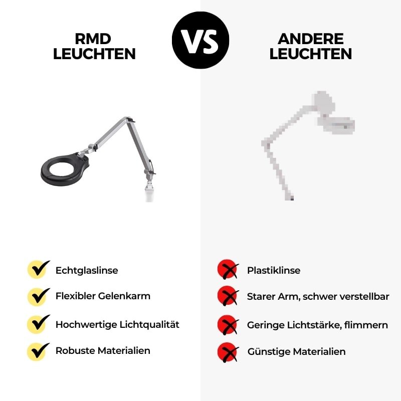 Die Beleuchtungslösung von RMD für Uhrmacher ist einfach fantastisch! Sie bietet eine brillante Leuchtkraft, blendfreies Licht und eine einfache Installation.