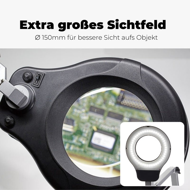 Unsere Lupenleuchte mit besonders großem Sichtfeld für anspruchsvollste Präzisionsarbeiten.
