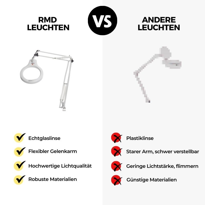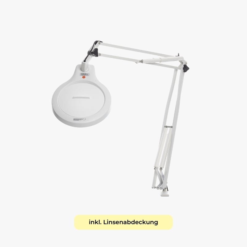 In unseren Lupenleuchten verwenden wir ausschließlich bikonvex geschliffene Glaslinsen in Optikerqualität, also keine optisch minderwertigen Pressglass- oder kratzempfindliche Kunststofflinsen.