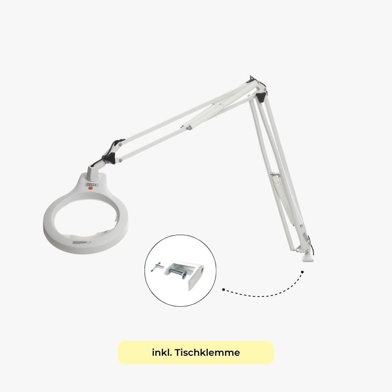 Unsere Erfahrung und das Feedback unserer Kunden zeigte, dass in den meisten Anwendungsbereichen eine Vergrößerung von 3-Dioptrien oder 5-Dioptrien den höchsten Arbeitskomfort bietet. Lupenleuchten mit einem Vergrößerungsfaktor von 3-Dioptrien sind für die meisten gängigen Arbeiten im Bereich von Werkstätten, als Lesehilfe, im zahnärztlichem Sterilisationsraum oder in Dentalpraxen ausreichend und vielseitig einsetzbar. Sie erhalten ein großes Sichtfeld, eine hohe Tiefenschärfe und ein unverzerrtes Bild über die gesamte Linse.