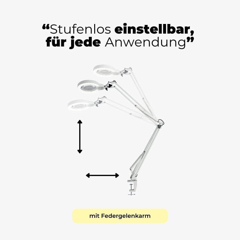 Dank unserer besonders robusten und gleichzeitig leicht verstellbaren Flex- oder Friktionsgelenkarmen bieten unsere Lupenleuchten einen großen Bewegungsspielraum und können individuell entsprechend der Sehaufgabe positioniert werden.
