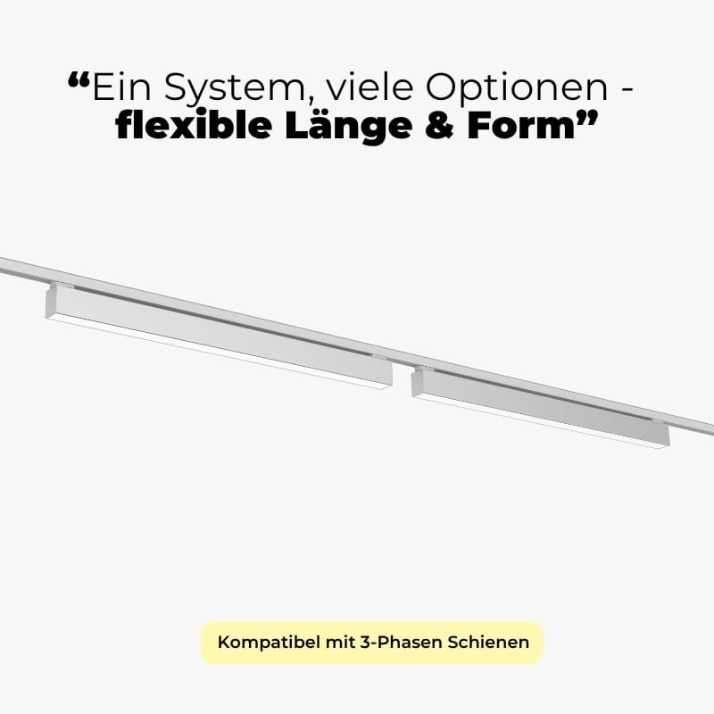 Die Schienenleuchten sind flexibel positionierbar und leicht anpassbar. Neben unseren Schienenleuchten können auch Spots, Pendelleuchten und andere Leuchtenarten integriert werden – ideal für eine vielseitige Beleuchtung, die sich wechselnden Raumkonzepten perfekt anpasst.