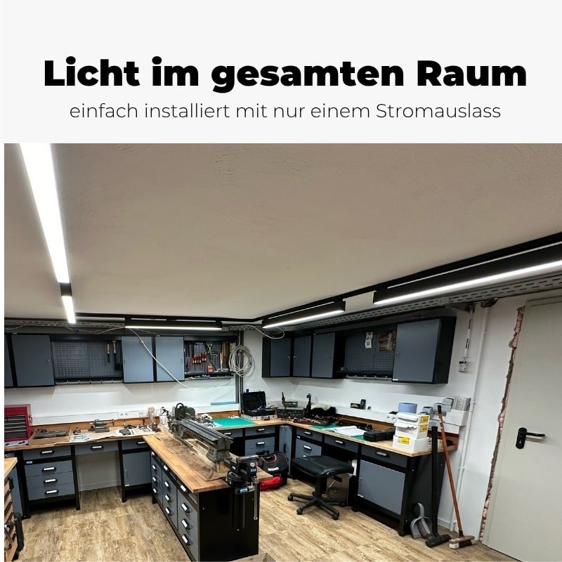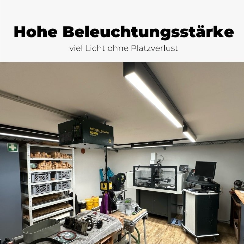Elegante LED-Schienenleuchte für natürliches, konzentrationsförderndes Licht in Ihrer Werkstatt.