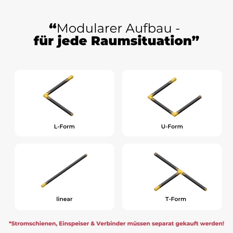 Ja, unsere Schienensysteme sind modular aufgebaut, sodass zusätzliche Schienen oder Leuchten jederzeit hinzugefügt werden können.