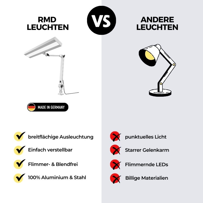 Die Beleuchtungslösung von RMD für Uhrmacher ist einfach fantastisch! Sie bietet eine brillante Leuchtkraft, blendfreies Licht und eine einfache Installation.